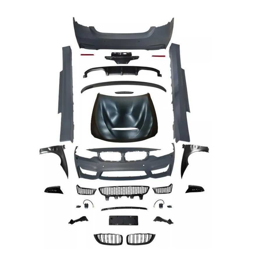 Upgrade your BMW F32 4 Series Coupe (2013-2020) with this M4 style full body kit. This complete kit includes front and rear bumpers along with side skirts, giving your F32 4 Series the aggressive, track-inspired look of the BMW M4. The body kit is made from high-quality plastic material that is lightweight, durable, and designed to withstand the rigors of daily driving. Whether you want to enhance your BMW’s aesthetics or improve its performance, this body kit offers the perfect balance of style and functionality.
