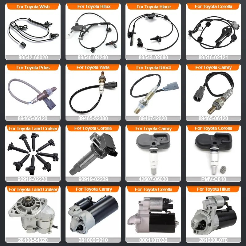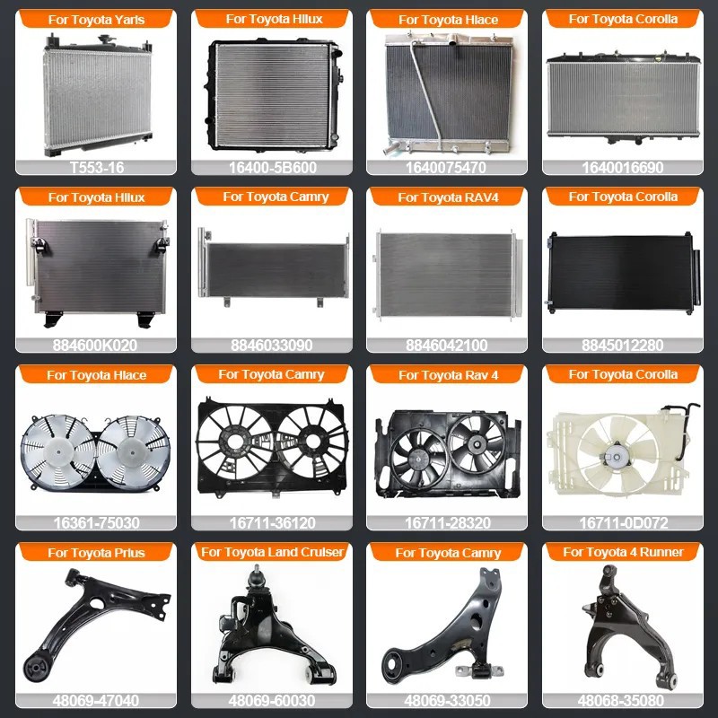 Discover a comprehensive selection of car accessories and spare parts designed for Toyota Corolla, Land Cruiser, Hilux, Hiace, and Prado. Our aftermarket auto parts meet OEM standards, ensuring precise fitment, durability, and enhanced vehicle performance. From engine components and suspension systems to interior upgrades and exterior styling kits, we provide high-quality Toyota auto accessories to keep your vehicle in top condition. Manufactured with premium-grade materials, these Toyota spare parts are tested for reliability, longevity, and safety. Whether you're looking for performance enhancements or routine maintenance parts, our wholesale car accessories offer cost-effective solutions for Toyota vehicle owners, auto repair businesses, and spare parts suppliers.