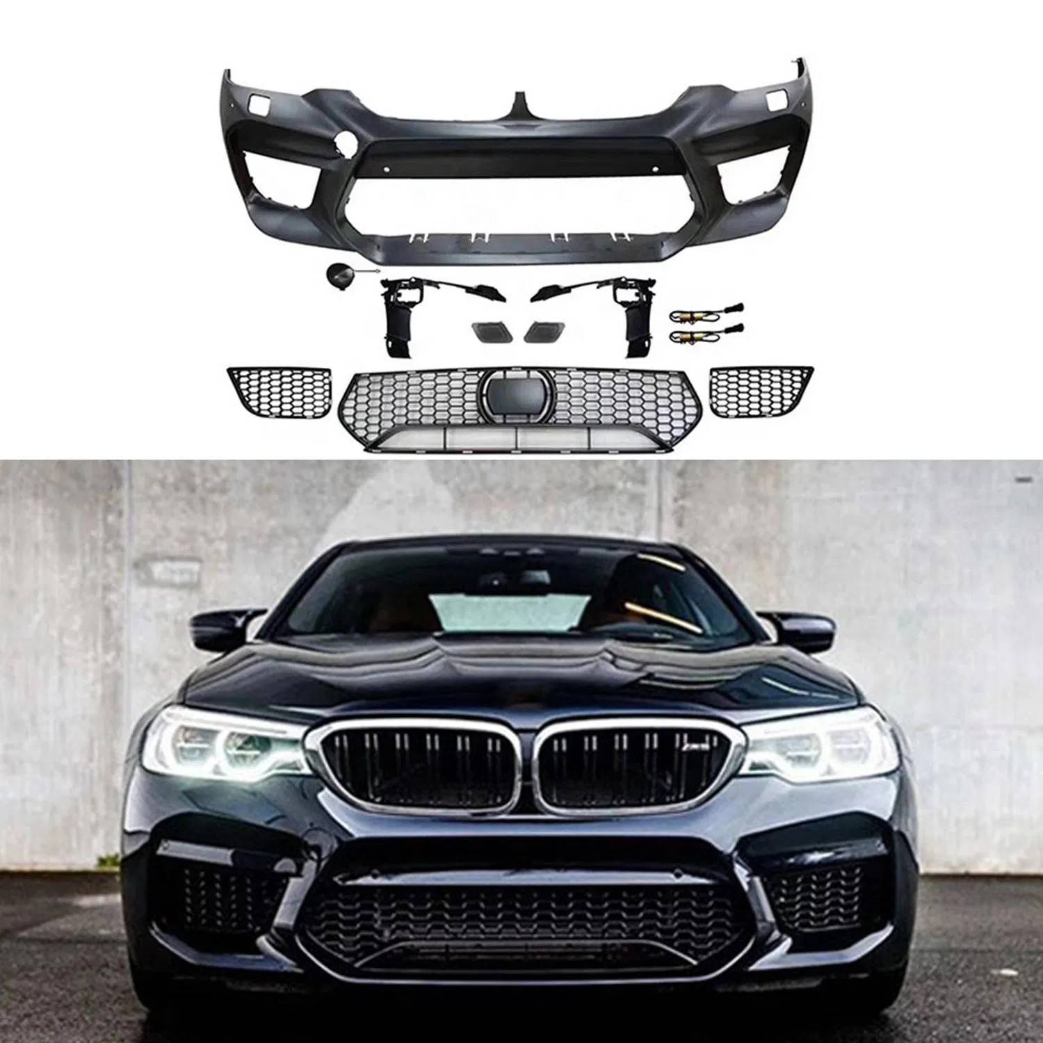 Elevate the appearance of your BMW 5 Series (2018-2020) with the G30 Lci M5 Style Body Kit, expertly crafted using high-quality polypropylene (PP) material. Designed to emulate the aggressive and sporty aesthetics of the M5, this kit includes front and rear bumpers and side skirts, delivering a complete vehicle transformation. The lightweight PP material ensures enhanced durability, resistance to impact, and a seamless fit for your BMW G30. With precision engineering, this kit not only adds a striking visual appeal but also improves aerodynamics, making your car more stable and fuel-efficient. Ideal for enthusiasts seeking a bold and dynamic upgrade, this body kit ensures your vehicle stands out both in performance and style.